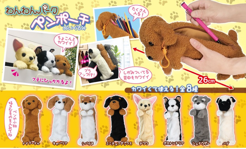 Super cute fluffy dog plush from Japan. Great choice for new school pencil case. These standard size plush pouches are approximately 10 inches long.